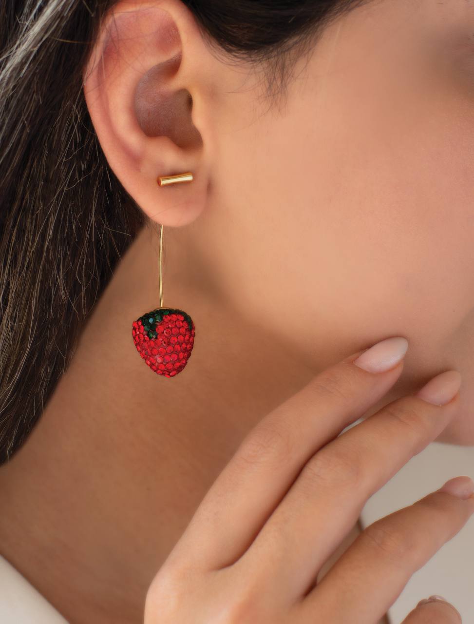 گوشواره کیوت آویز توت فرنگی